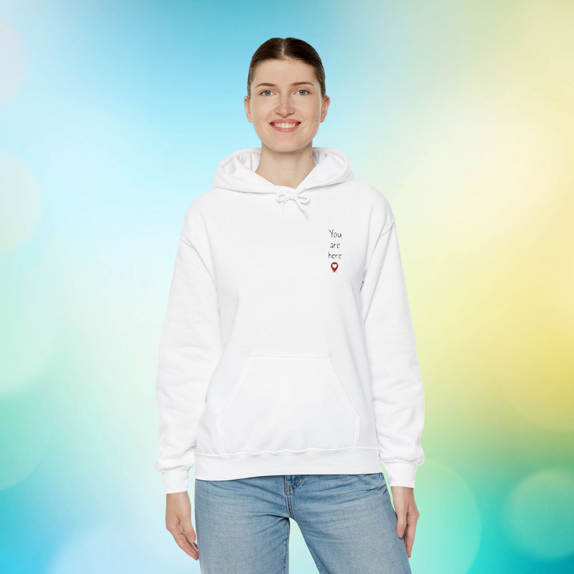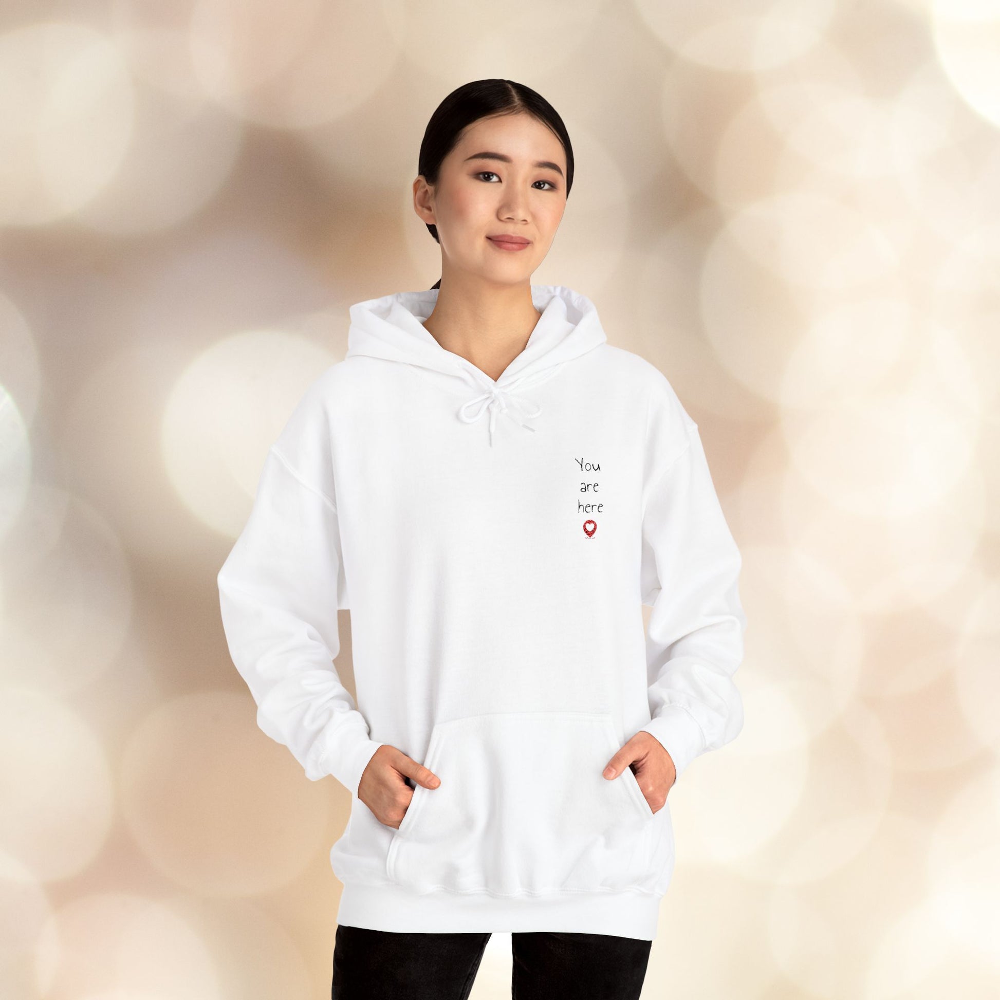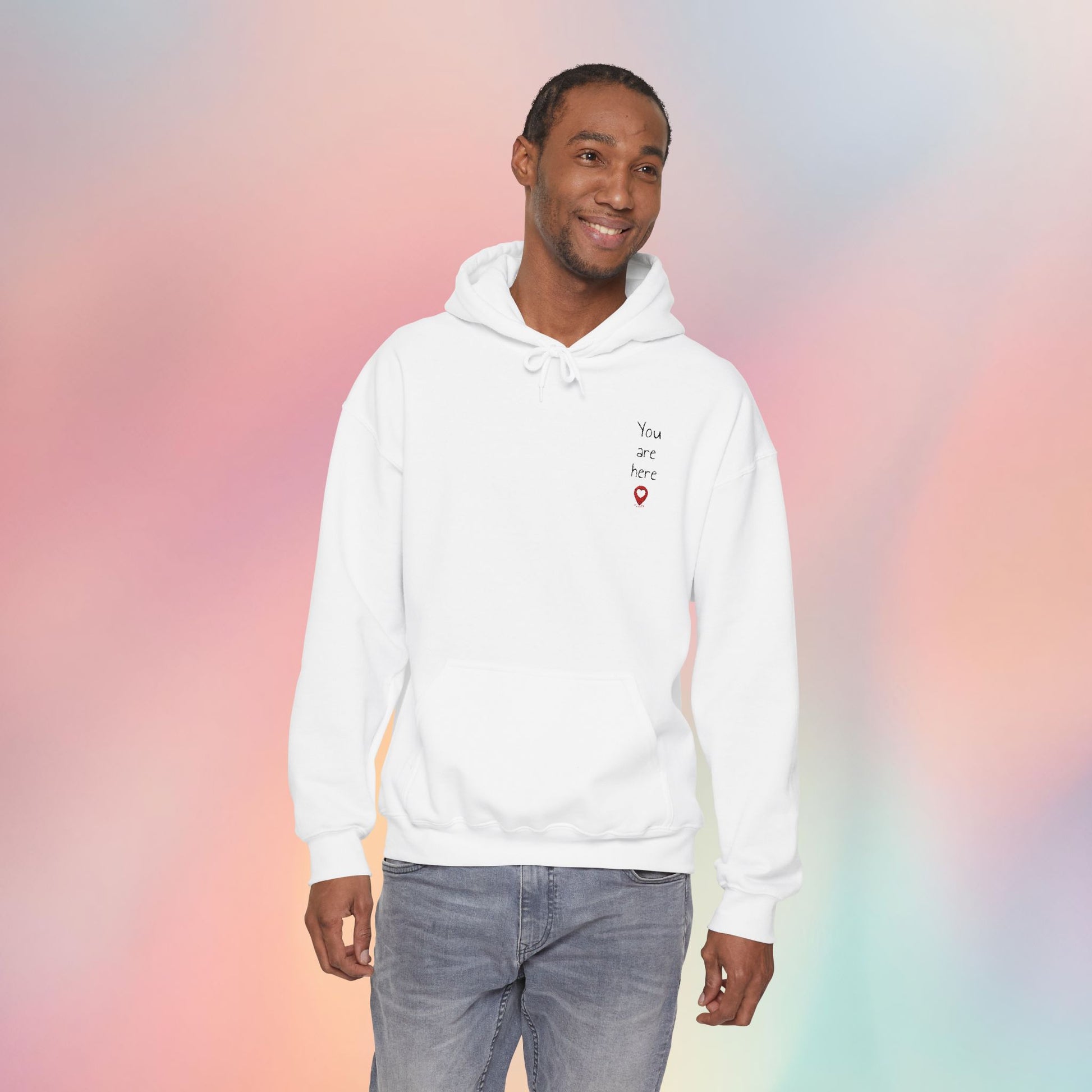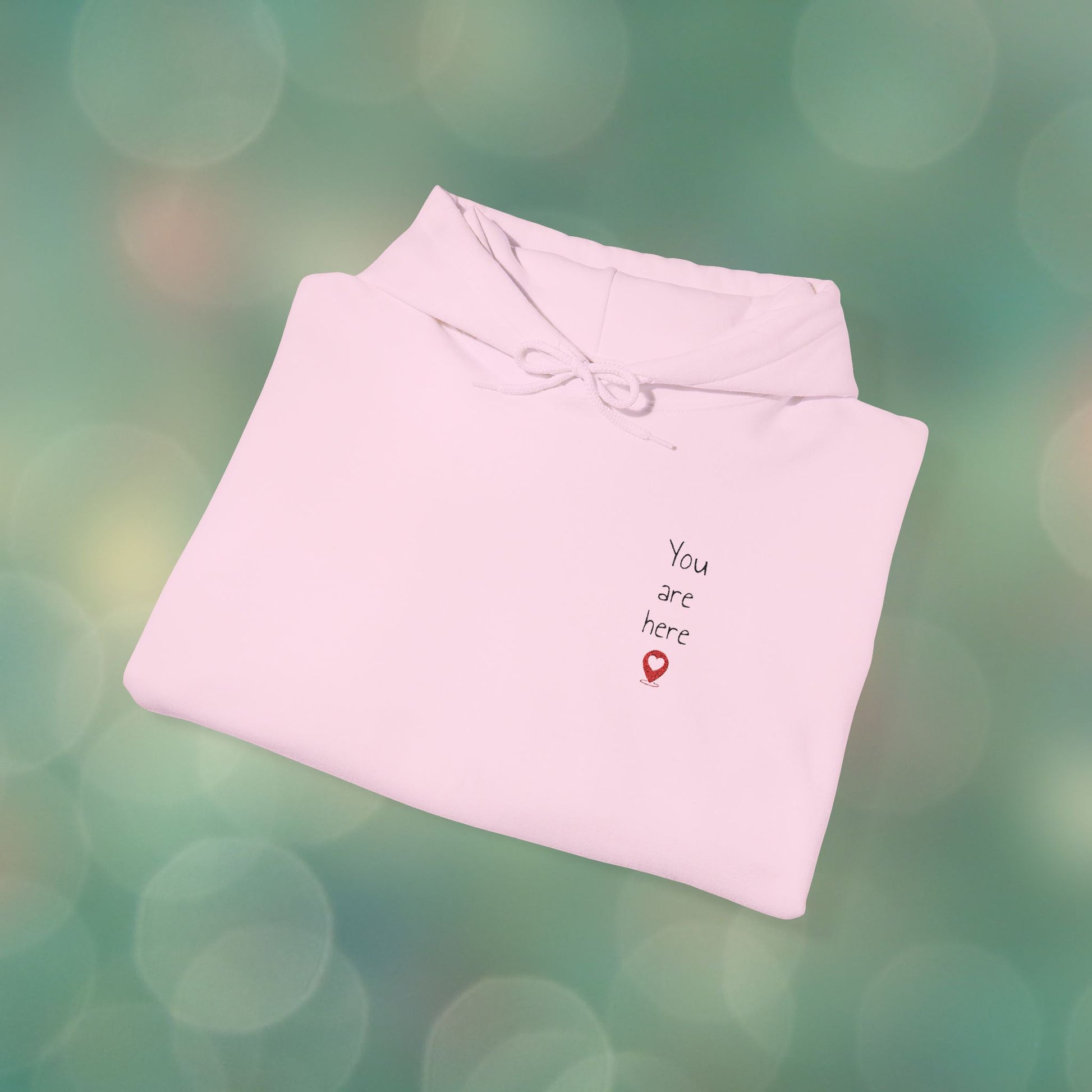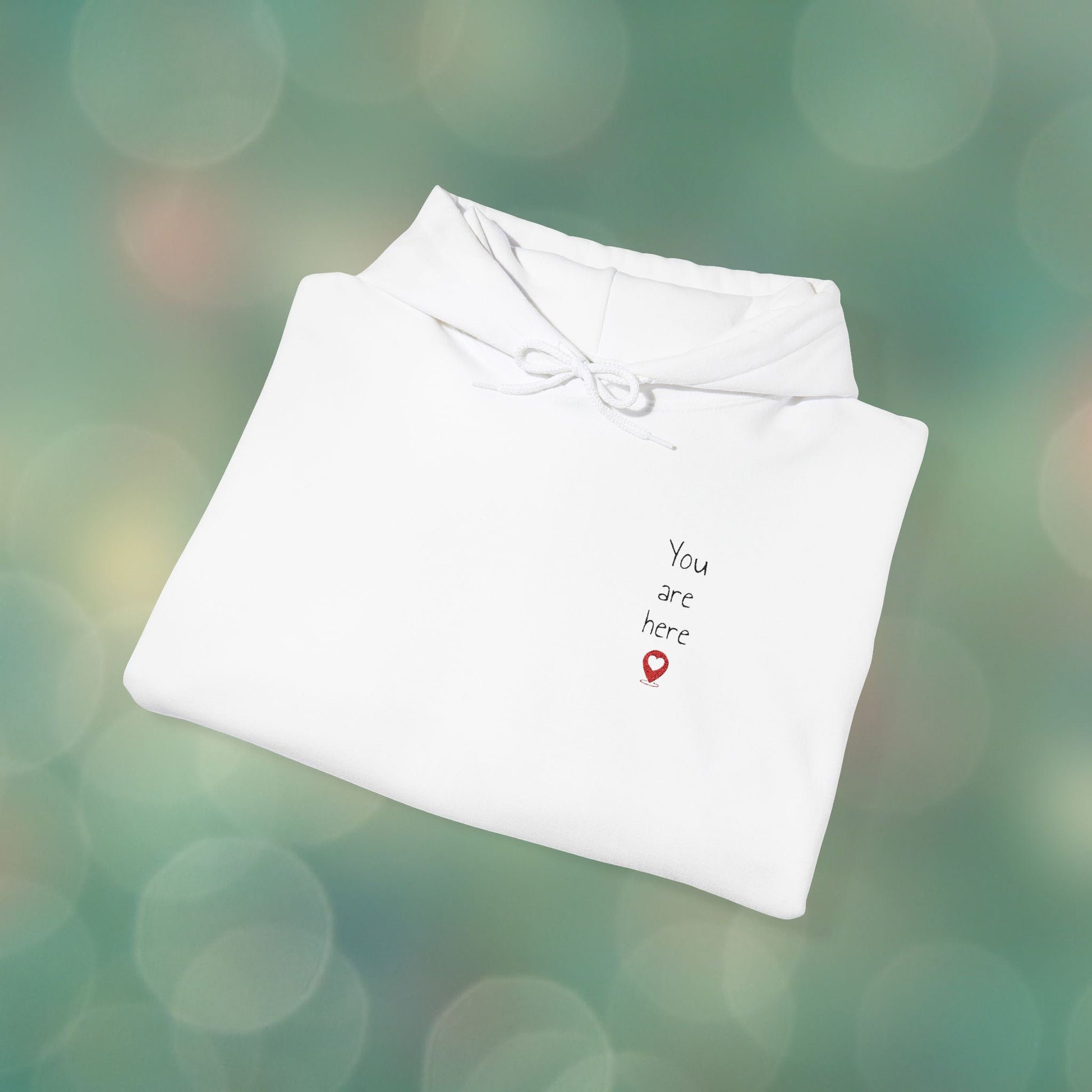 This ultra-soft, plush hoodie isnât just warmâitâs a whole vibe. Featuring an embroidered âYou are hereâ with a heart-shaped pin drop, itâs a sweet and subtle way to remind someone (or yourself) that they hold a special place in your heart.Â
