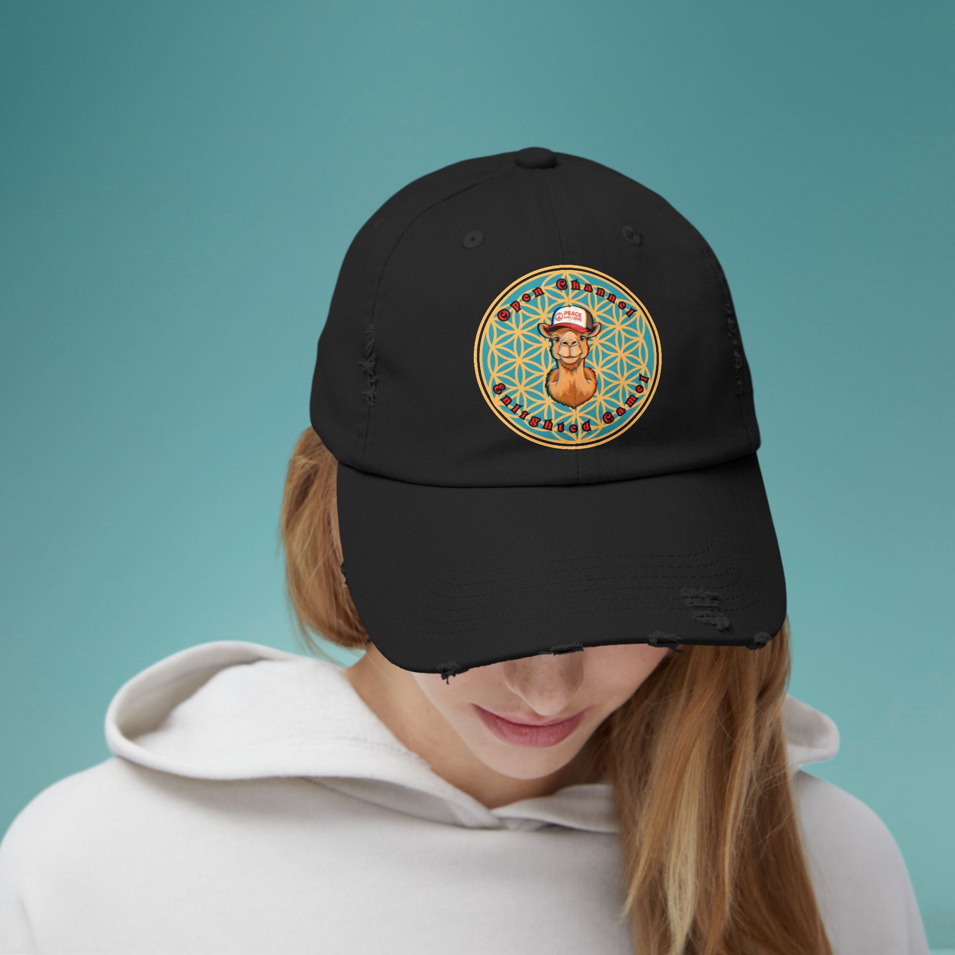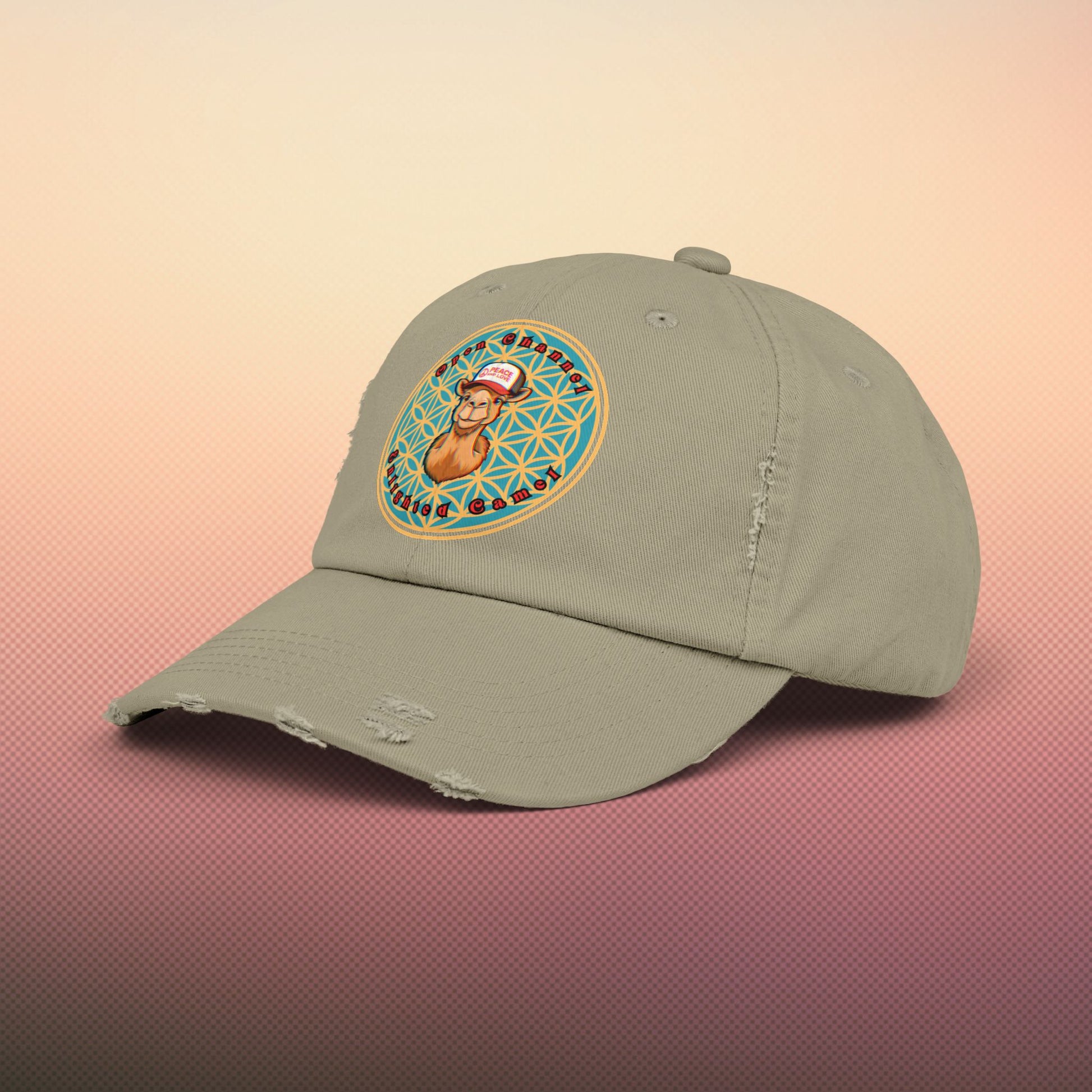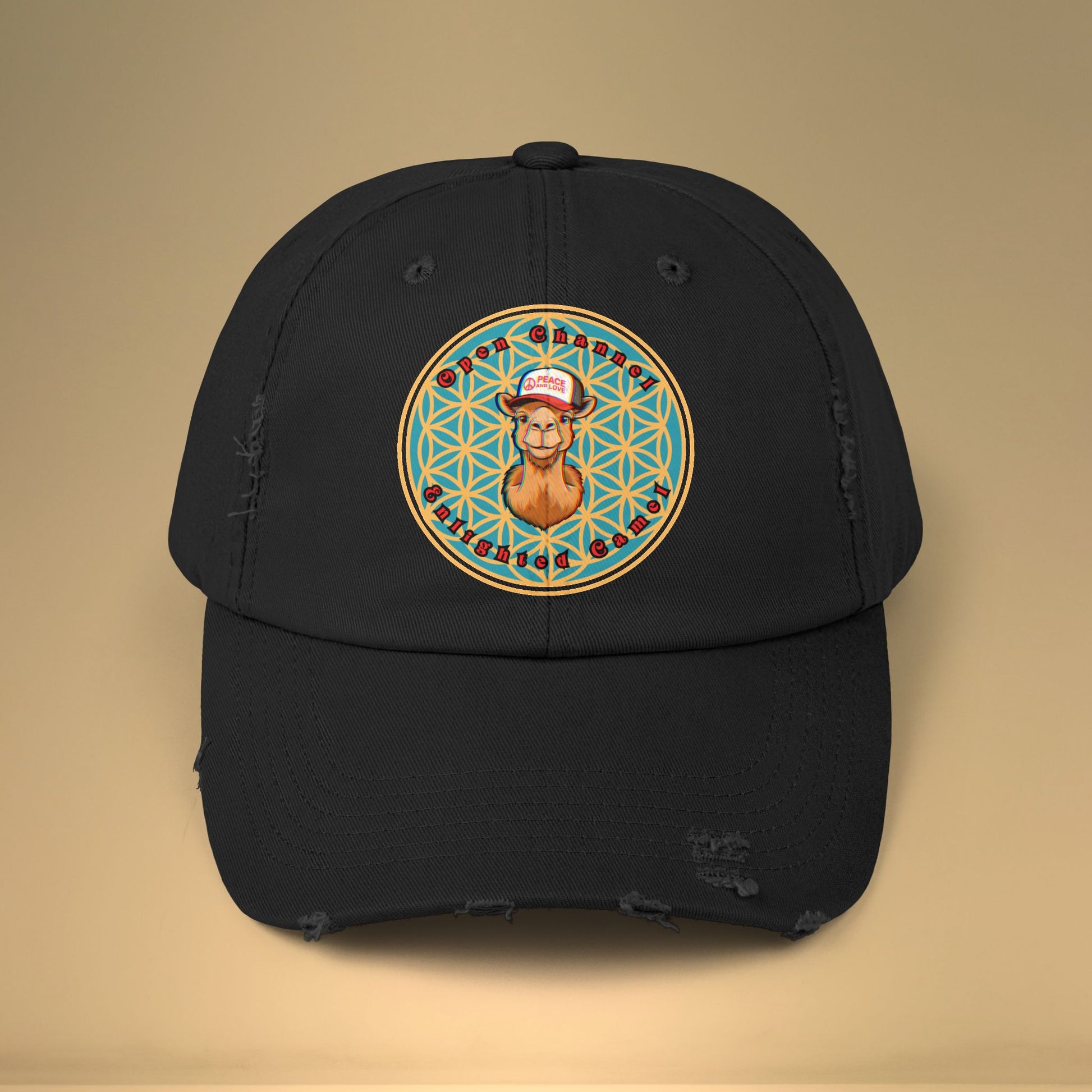 Stay cool, cheeky, and spiritually chic with this distressed cap featuring a dapper camel rocking a hat and the playful phrase "I Am an Open Channel Just Like This Enlightened Camel."