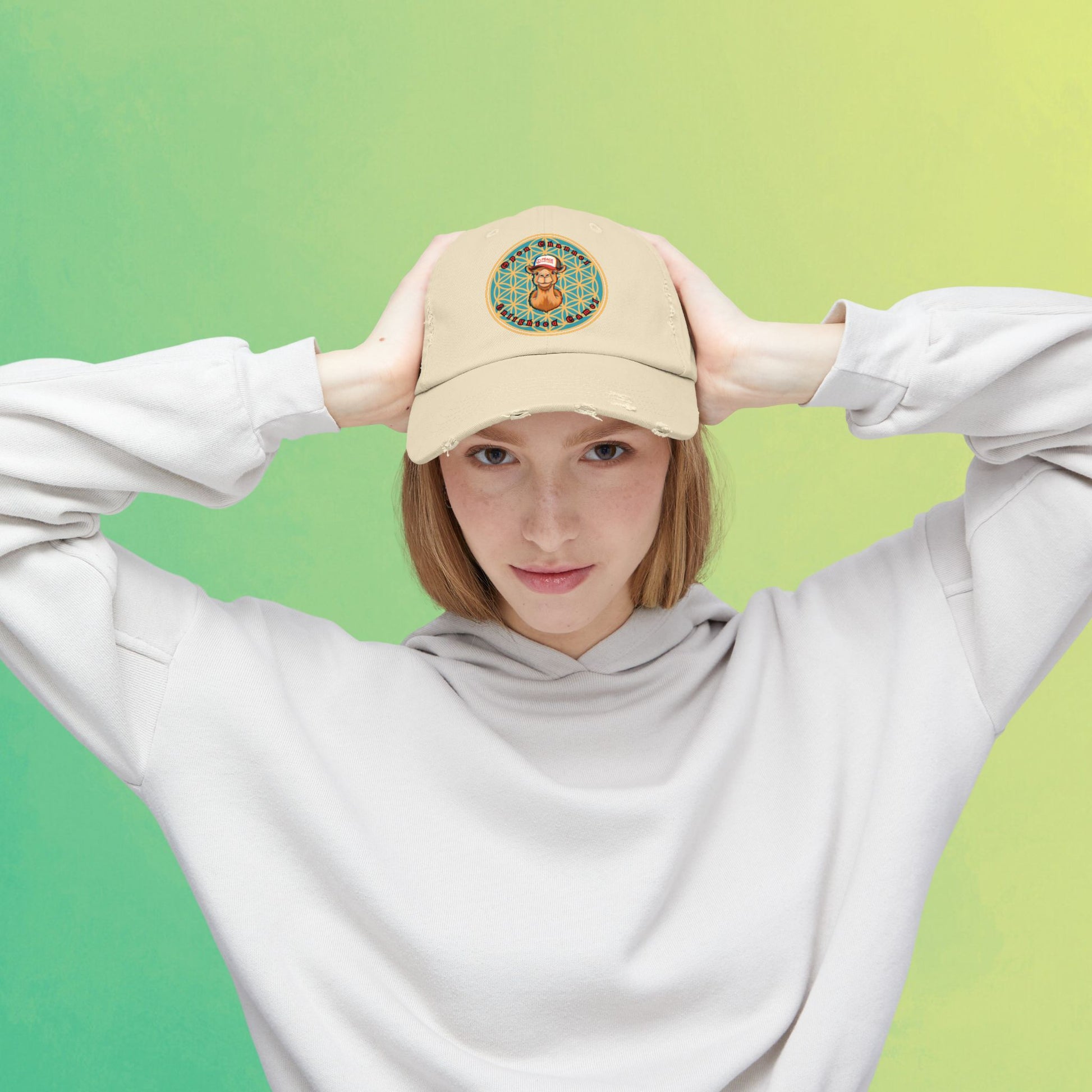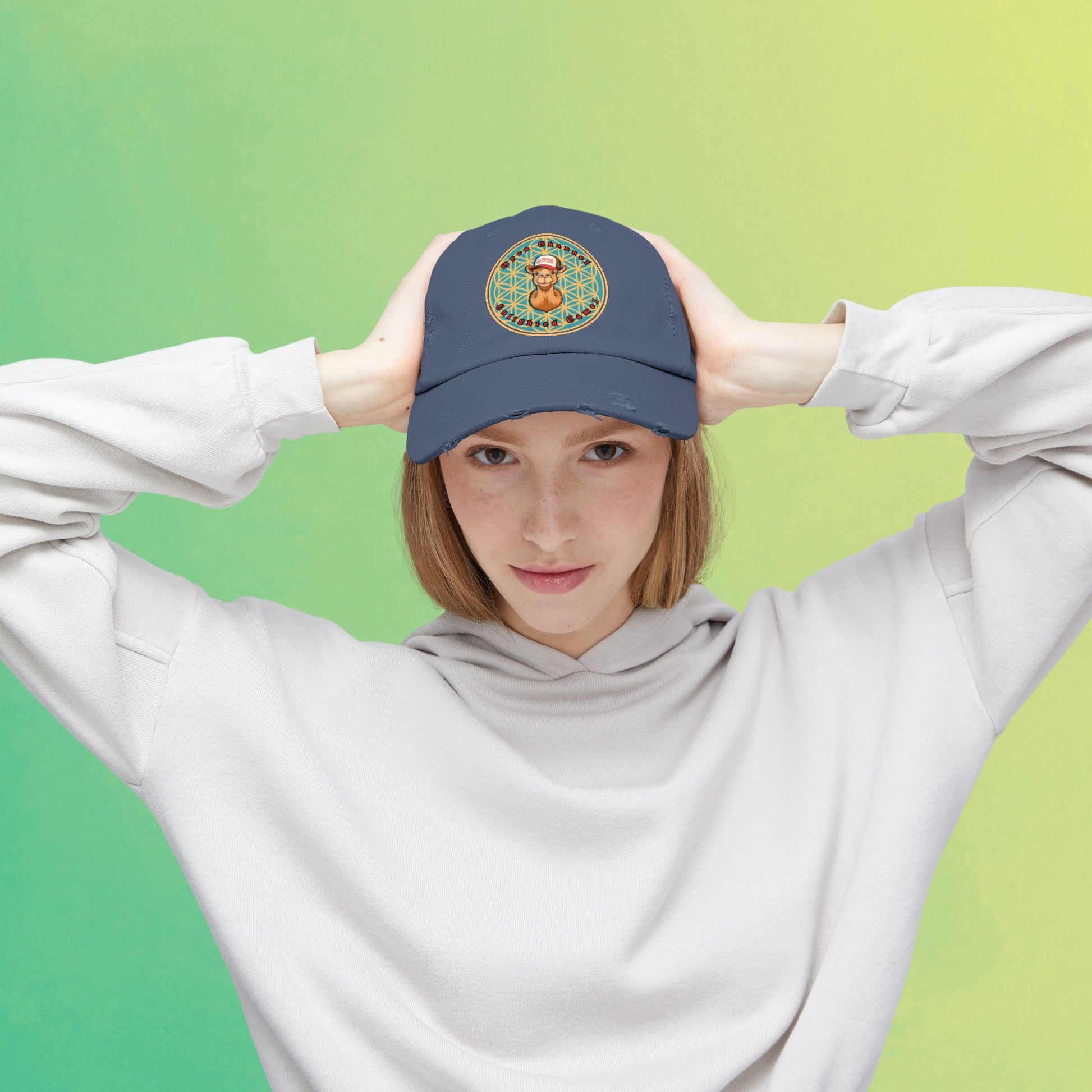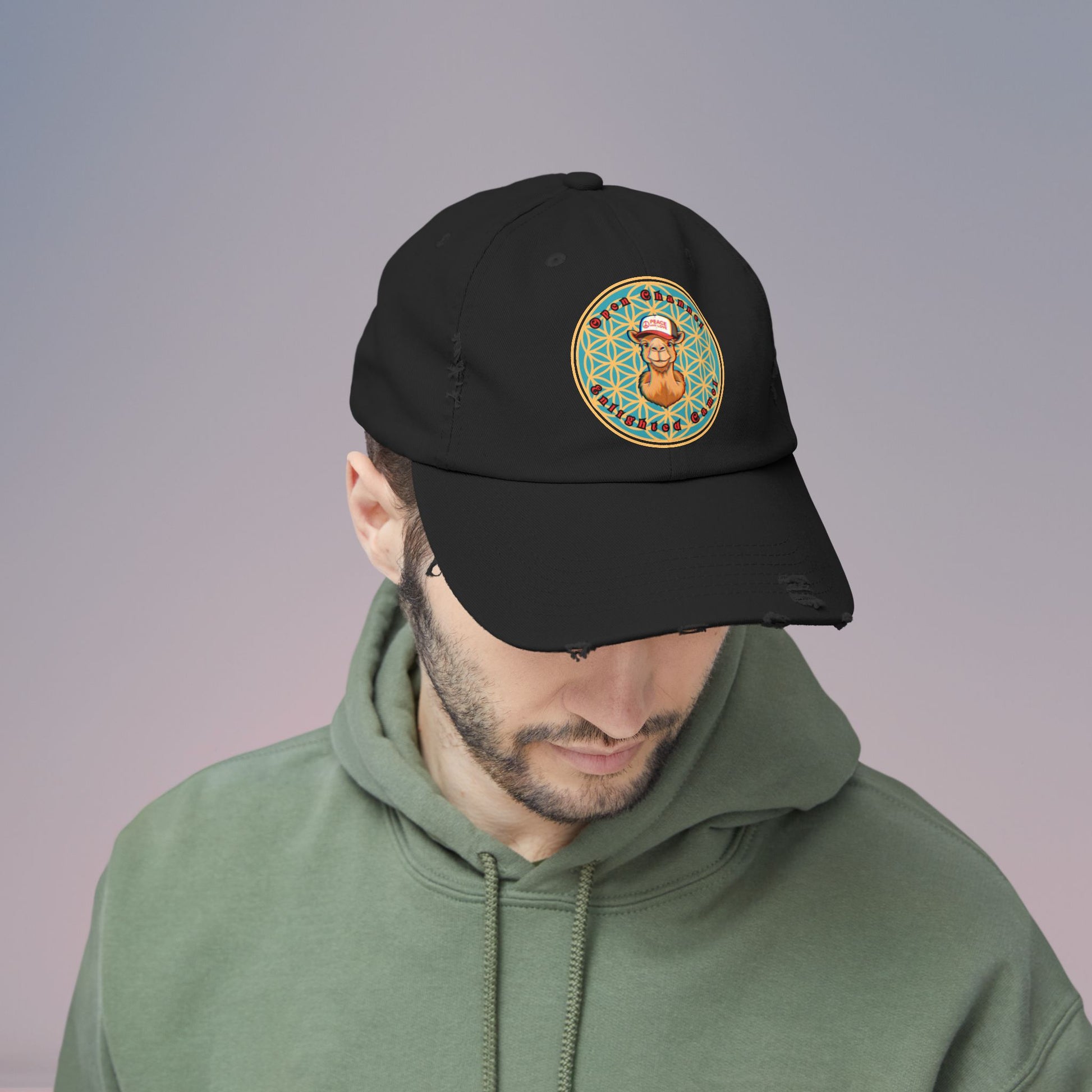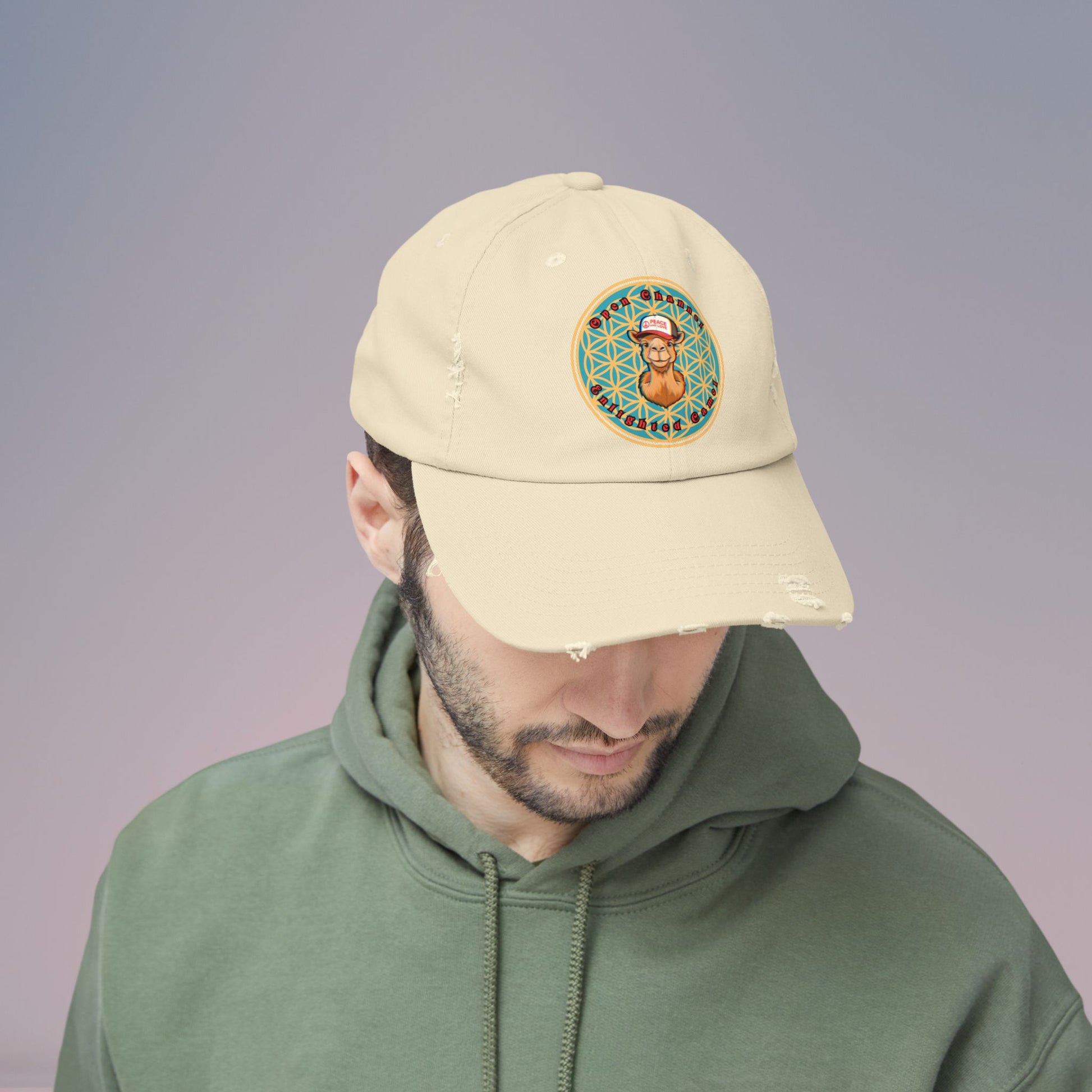 Stay cool, cheeky, and spiritually chic with this distressed cap featuring a dapper camel rocking a hat and the playful phrase "I Am an Open Channel Just Like This Enlightened Camel."